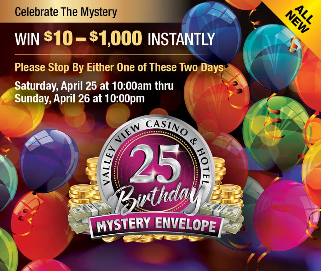 Join us at Valley View Casino & Hotel for our Thirsty Thursdays promotion where you can sip on $5 ice-cold draft beer, $6 hand-selected wines and $7 refreshing cocktails. Enjoy these specials throughout the casino and at any of our restaurants or bars.