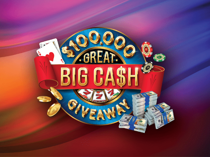 WIN YOUR SHARE OF $100,000 IN CASH Please join us for our $100,000 Great Big Cash Giveaway from 4:00pm – 11:00pm, where multiple guests will be chosen to win $200 every 30 minutes! Simply play your favorite slots and table games to win.